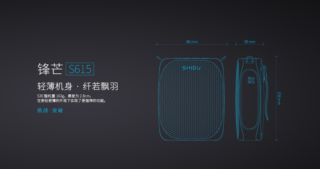 Máy trợ giảng không dây Shidu s615 nhỏ gọn sang trọng dùng cho giáo viên hoặc hướng dẫn viên thuận tiện mang theo. Loa Máy trợ giảng không dây Shidu s615 rất nhẹ. Loa phát công suất 20w cho phòng 80m2 ngoài trời cho khoảng 50 người nghe rõ